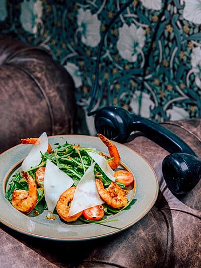 МИКС САЛАТ, ПОМИДОРЫ «ЧЕРРИ», КУРИНАЯ ГРУДКА / ОБЖАРЕННЫЕ ТИГРОВЫЕ КРЕВЕТКИ, СЫР «ПАРМЕЗАН» (РАЗМЕР КРЕВЕТОК 21 / 25)